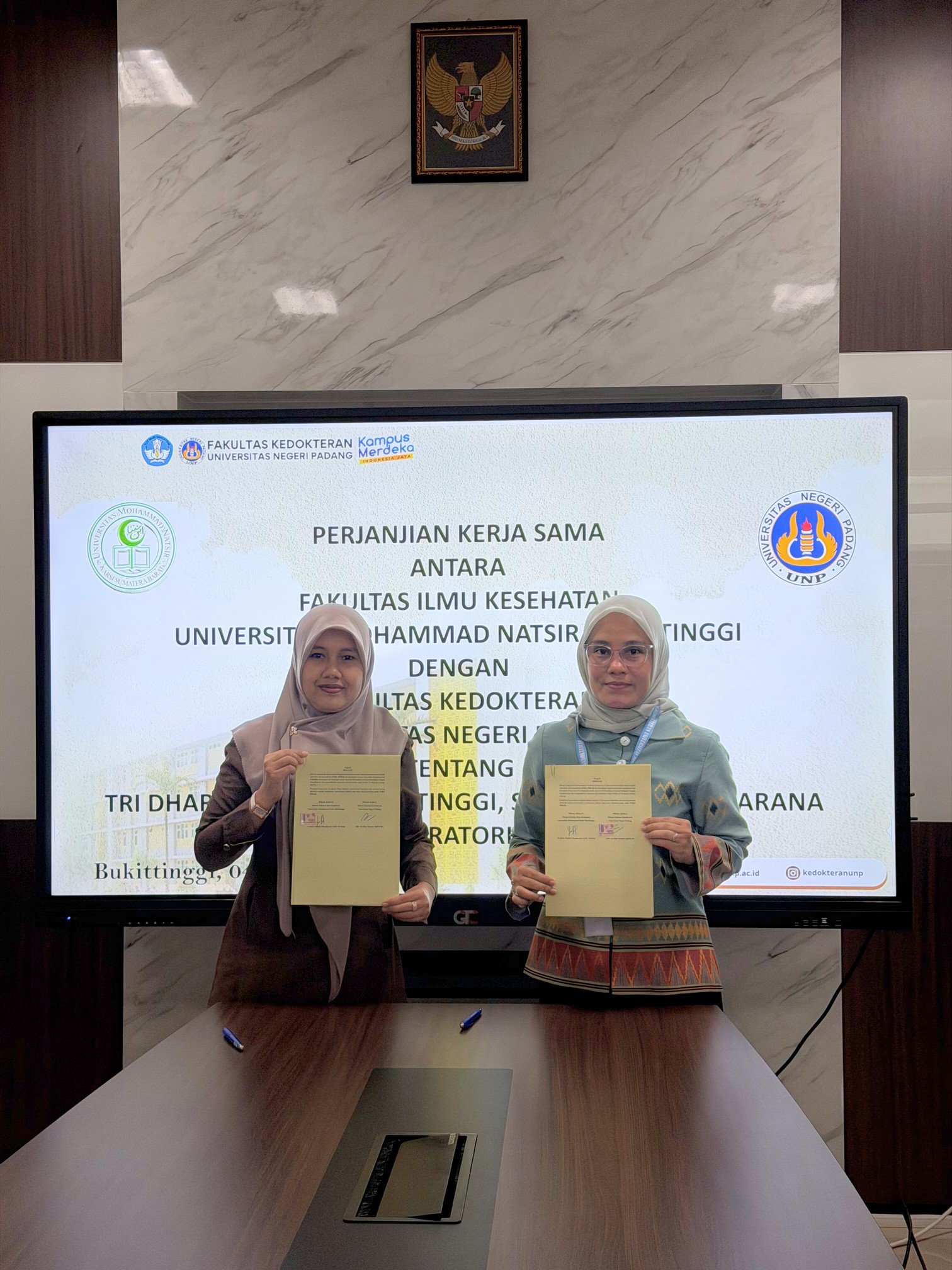 Bukittinggi– Fakultas Kedokteran Universitas Negeri Padang dan Fakultas Ilmu Kesehatan Universitas Mohammad Natsir Bukittinggi secara resmi menandatangani Perjanjian Kerja Sama pada Rabu, (1/3/2026) di Kampus FK UNP, Bukittinggi. Kesepakatan ini menjadi langkah strategis dalam memperkuat implementasi Tri Dharma Perguruan Tinggi, khususnya pada bidang pendidikan, penelitian, serta pengabdian kepada masyarakat. Selain itu, kerja sama juga mencakup pemanfaatan dan pengembangan sarana serta prasarana laboratorium sebagai upaya meningkatkan mutu pembelajaran dan kegiatan akademik di kedua institusi.