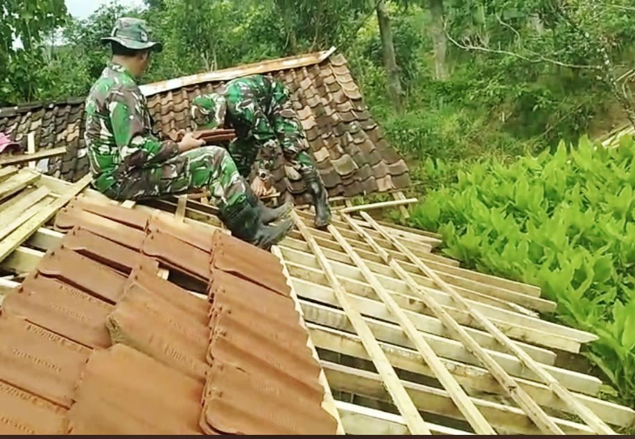 “Meski pada siang hari selesai istirahat, cuaca lumayan cukup panas saat berada diatas atap, tidak mengurangi semangat anggota TNI dan warga masyarakat saat pemasangan genteng tersebut,” ucapnya.