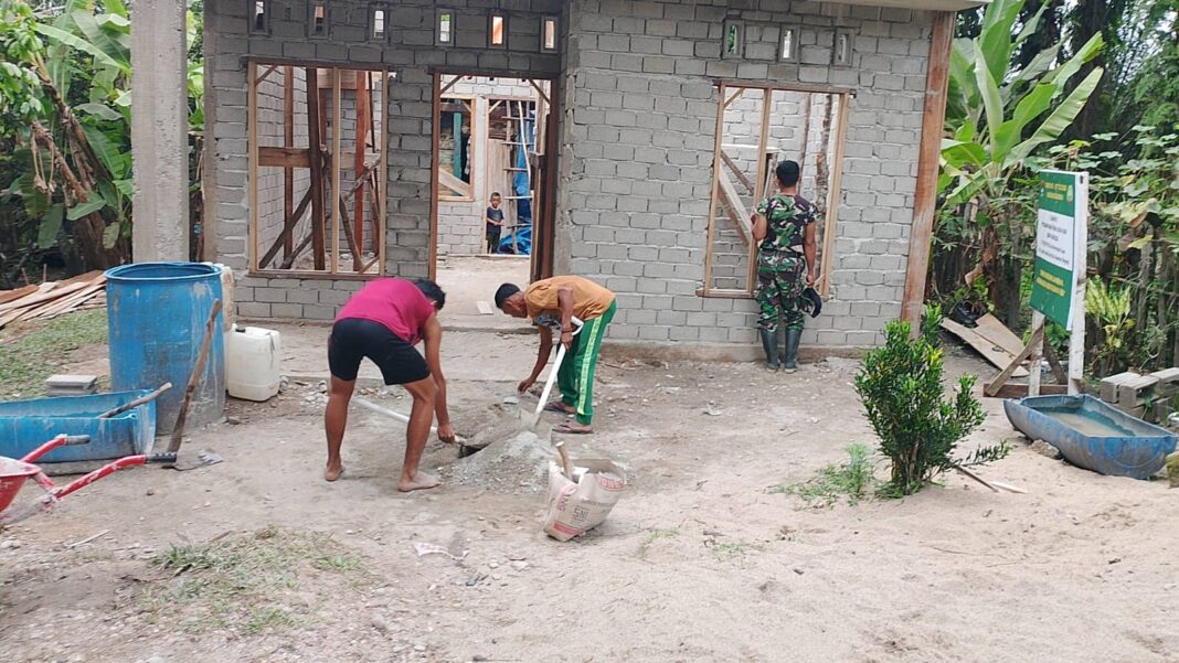 Kuantan Singingi – Program TNI Manunggal Membangun Desa (TMMD) ke-127 Kodim 0302/Inhu terus memacu pembangunan rumah layak huni milik Bapak Masrizal di Dusun 2 Desa Perhentian Luas, Kecamatan Logas Tanah Darat, Kabupaten Kuantan Singingi. Pada hari Minggu, 01 Maret 2026, Satgas TMMD bersama masyarakat setempat bahu membahu melanjutkan pekerjaan plester dinding, sebagai bagian penting dari upaya mewujudkan hunian yang layak dan nyaman bagi Bapak Masrizal dan keluarga.