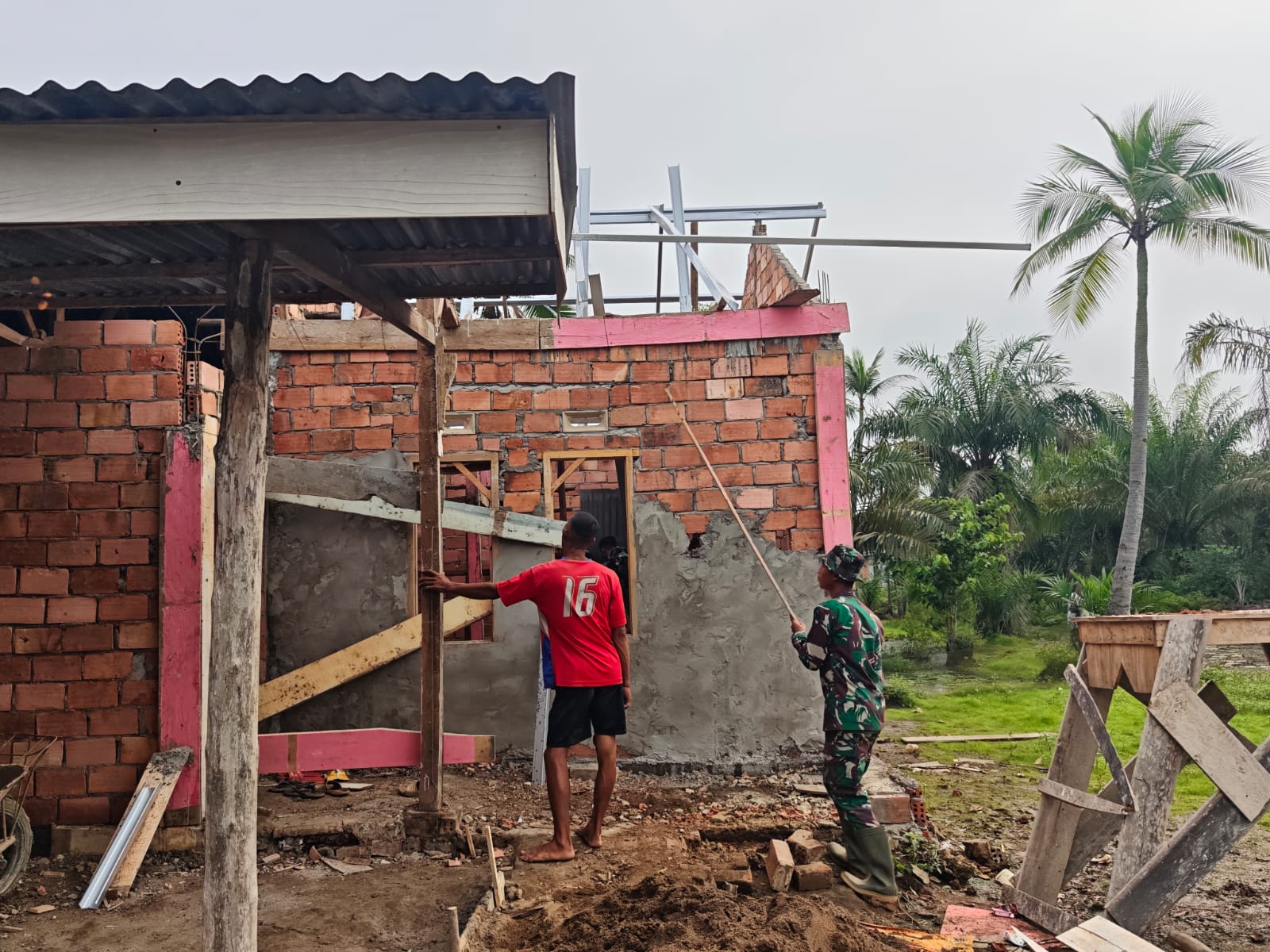 Progres pembangunan RTLH ini terus dipercepat agar dapat selesai sebelum penutupan TMMD 127 Kodim 0430/Banyuasin (BA). Dengan semangat gotong royong, anggota Satgas TMMD dan masyarakat bahu-membahu memasang rangka baja dan memplester dinding, memastikan setiap bagian terpasang dengan rapi dan kuat.