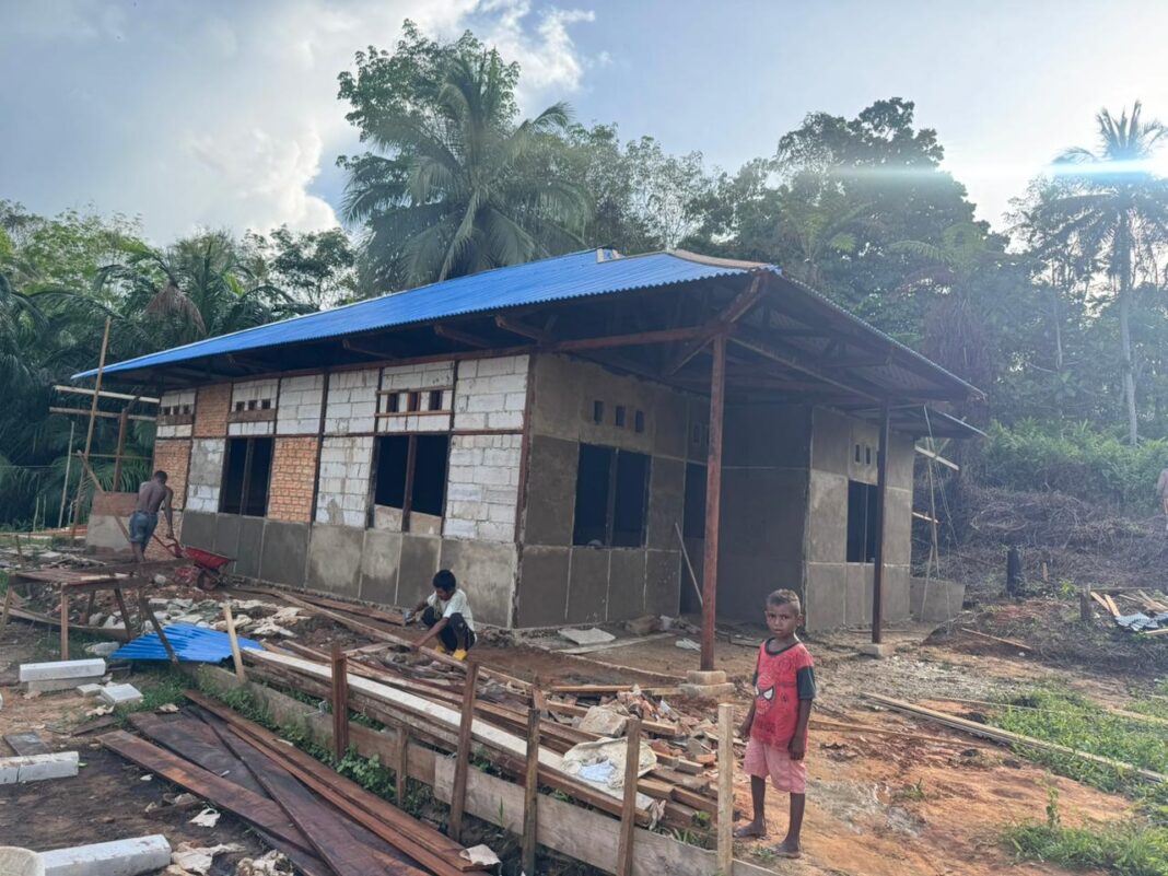 Mappi – Impian Bapak Fransiskus Saferius Abohoy untuk memiliki rumah yang layak huni di Kampung Yibin, Distrik Venaha, Kabupaten Mappi, semakin dekat dengan kenyataan. Satgas TMMD (TNI Manunggal Membangun Desa) ke-127 Kodim 1704/Mappi terus memacu pembangunan rumah Bapak Fransiskus, dengan fokus pada pemasangan seng dan plester dinding pada hari Minggu (01/03/2026).