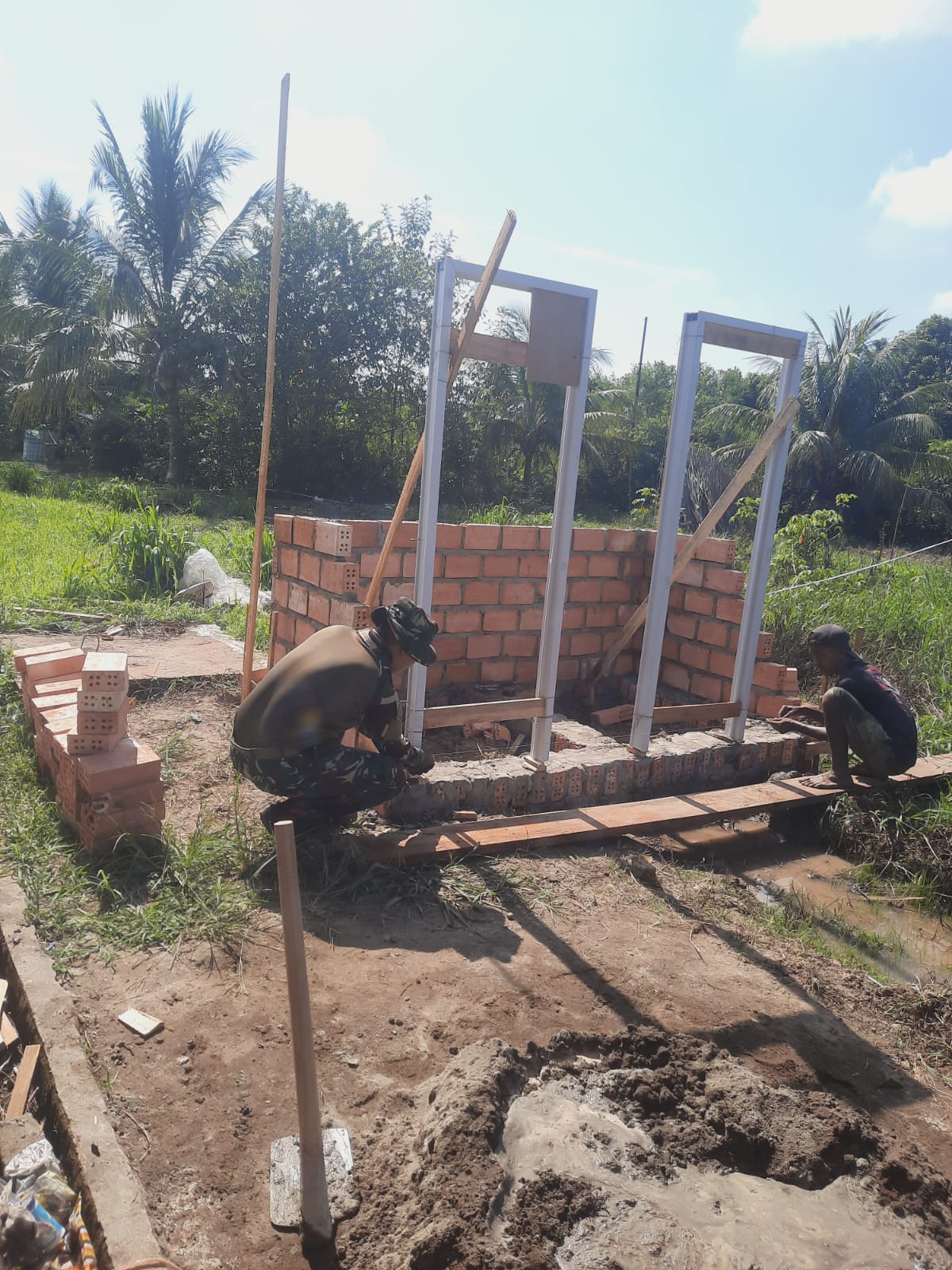 Pasiter Kodim 0401/Muba, Kapten Inf Hermanto, mengatakan proses pembangunan sudah dimulai dengan pemasangan tiang untuk MCK dan tandon air.