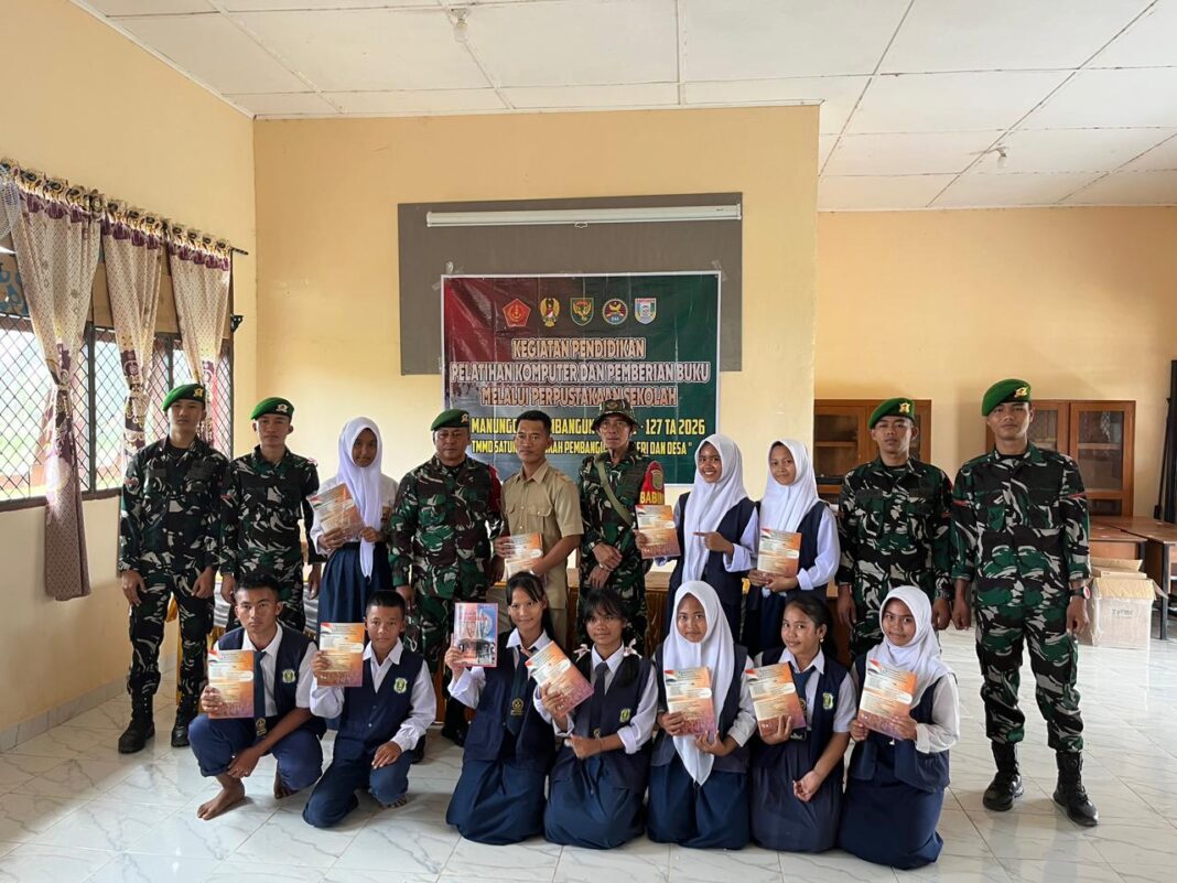 BANYUASIN – Anggota Satuan Tugas (Satgas) TNI Manunggal Membangun Desa (TMMD) ke-127 melaksanakan kegiatan pendidikan berupa pelatihan komputer dan pemberian buku melalui perpustakaan sekolah. Kegiatan ini bertempat di SMPN 3 Pulau Rimau, Desa Wonosari, Kecamatan Pulau Rimau, Kabupaten Banyuasin.