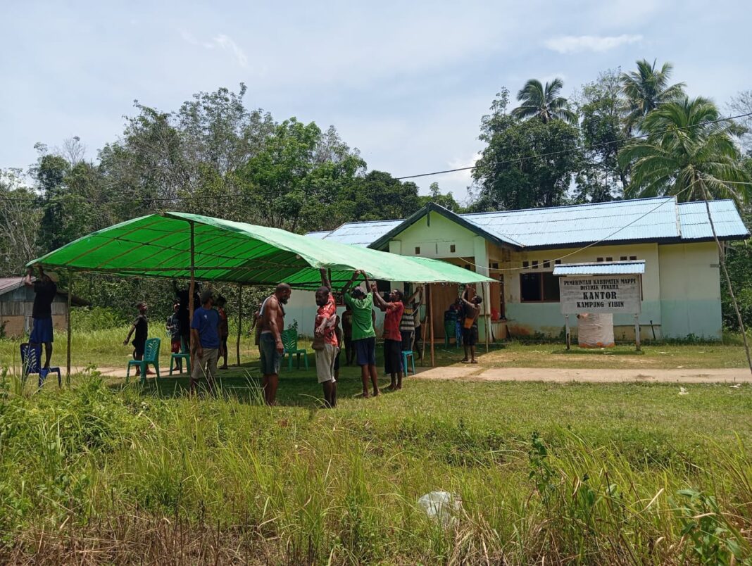 KAMPUNG YIBIN, DISTRIK VENAHA, KABUPATEN MAPPI – Seiring dengan pelaksanaan hari ke-21 TMMD (TNI Manunggal Membangun Desa) Kodim 1704/Mappi Ke-127 Tahun 2026 pada Senin (02/03/2026), masyarakat Kampung Yibin menunjukkan semangat gotong royong yang tinggi dengan bekerja sama mendirikan tenda tepat di depan Kantor Kampung. Tenda tersebut akan digunakan sebagai tempat untuk berbagai kegiatan sosialisasi, penyuluhan kesehatan, dan pemeriksaan kesehatan bagi seluruh warga masyarakat setempat.