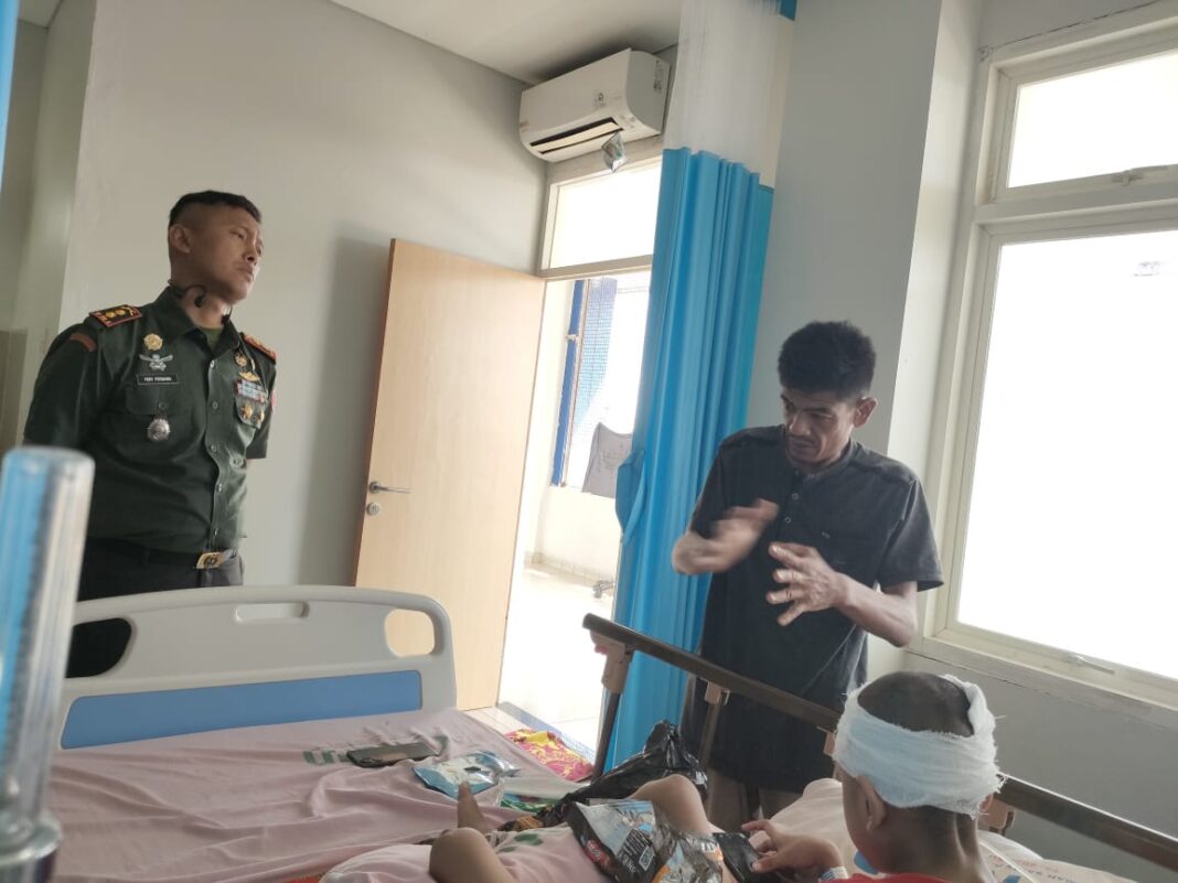 Barabai,dutametro.com-Komandan Kodim 1002 Hulu Sungai Tengah (HST) Letkol Inf Fery Perbawa mengunjungi dan memberikan motivasi kesembuhan bagi ananda Muhamad Aufa Syafiq (12) putra dari Sertu Epip Abdul Muplih anggota Koramil 1002-04/Labuan Amas Selatan yang dirawat di RS. Damanhuri Barabai . Senin (02/09/2024).