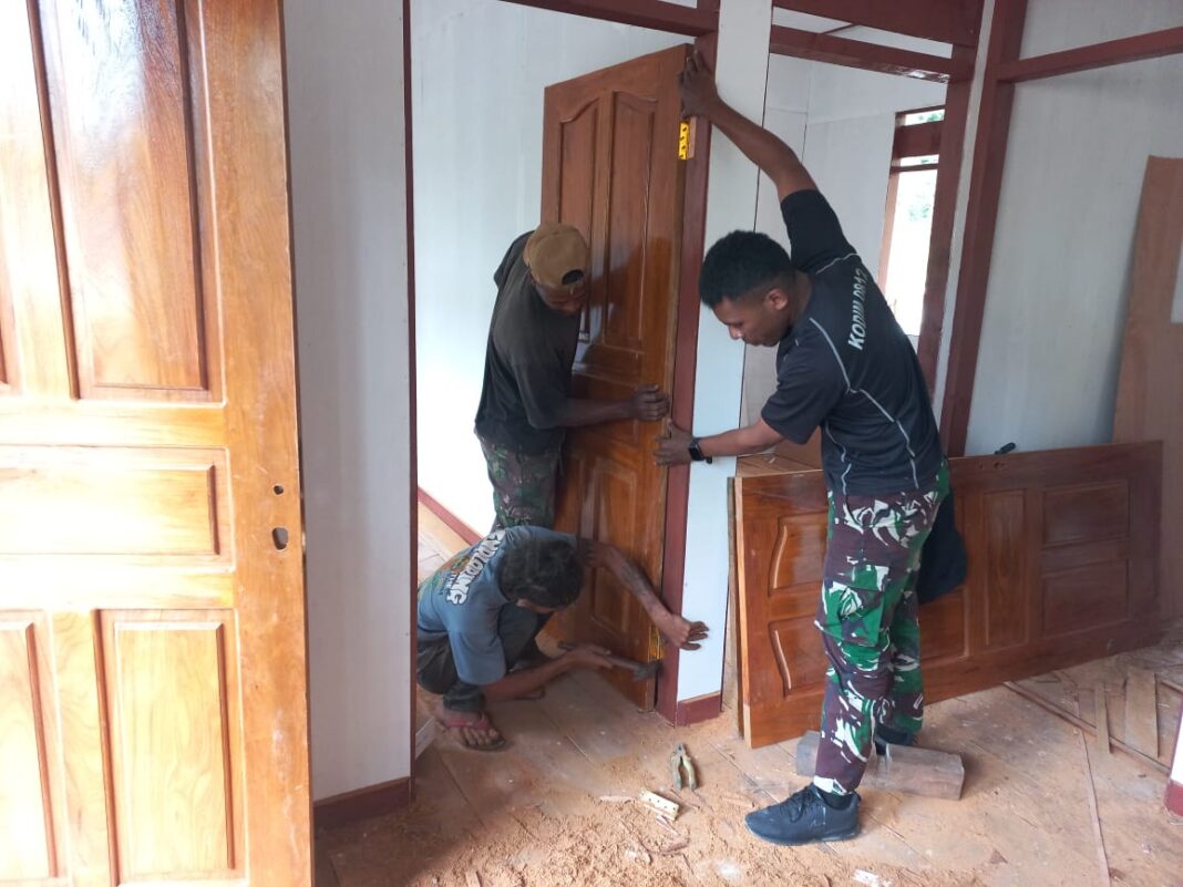 Kegiatan tersebut menunjukkan perkembangan yang signifikan dengan capaian progres pembangunan mencapai 90 persen. Pada tahap kali ini, personel Satgas TMMD melaksanakan pemasangan pintu rumah pada bangunan yang telah rampung pada tahap sebelumnya.