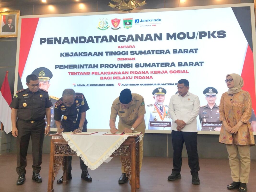 P ad ang, dutametro.com – Pemerintah Provinsi Sumatera Barat (Sumbar) menjalin kerja sama tentang pelaksanaan kerja sosial bagi pelaku tindak pidana dengan Kejaksaan Tinggi Sumbar. Penandatanganan MoU kerjasama tersebut berlangsung di Auditorium Gubernuran, Senin (1/12/2025).