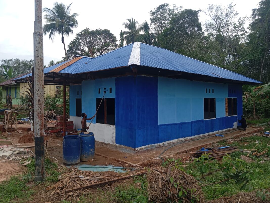 Mappi – Rumah Nomor 2 milik Bapak Nikolaus Abohoy di Kampung Yibin terus menunjukkan kemajuan signifikan. Pada hari ke-22 pelaksanaan TMMD ke-127, kegiatan utama meliputi pemasangan keramik, pemasangan plafon, serta pengerjaan plester dinding dan pengecatan. Pekerjaan ini dilakukan secara beriringan, mempercepat proses pembangunan agar segera dapat dihuni.