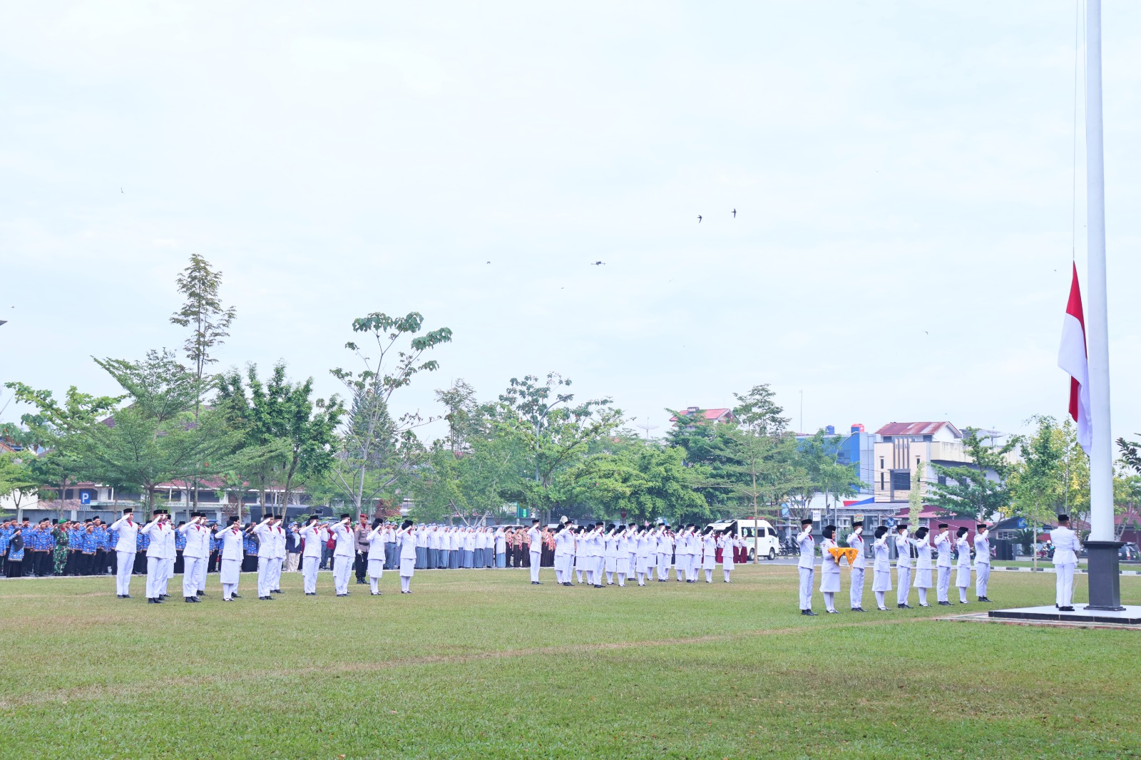 Payakumbuh,Dutametro.com- Upacara Peringatan Hari Lahir Pancasila berlangsung khidmat di halaman Balai Kota Payakumbuh, Senin (02/06/2025).