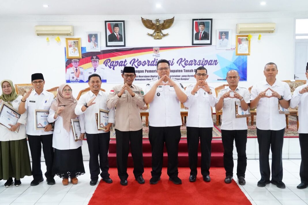 Pada saat rakor tersebut juga diumumkan hasil pengawasan kearsipan lingkup Pemkab Tanah Datar tahun 2025 dimana terbaik I diraih Dinas Kominfo kategori sangat memuaskan, terbaik II diraih Badan Kepegawaian Pengembangan Sumber Daya Manusia kategori sangat memuaskan dan terbaik III diraih Inspektorat Daerah kategori sangat memuaskan.
