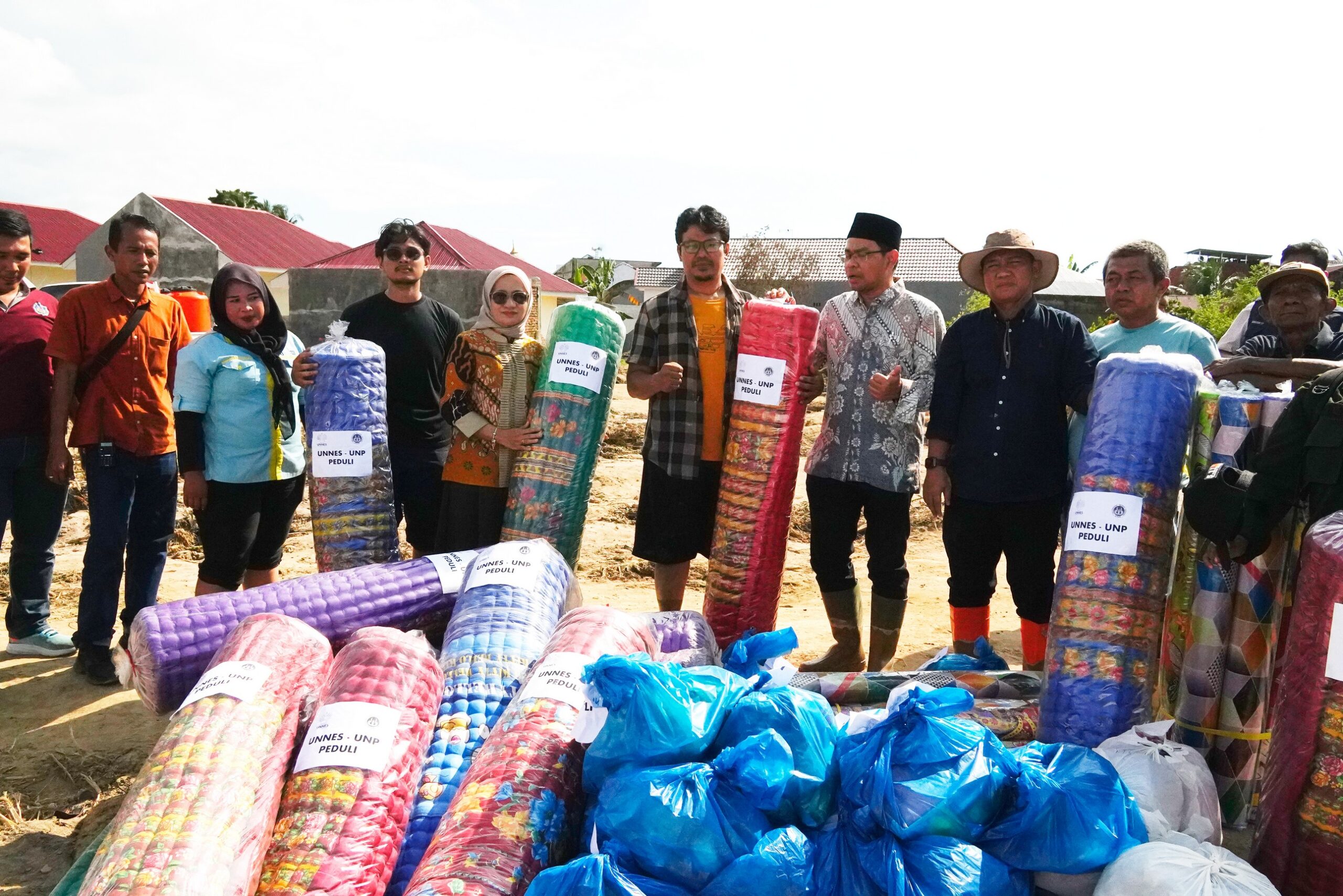 Dalam penyaluran tersebut, pimpinan UNP bersama Ketua Lembaga Penelitian dan Pengabdian kepada Masyarakat (LPPM) UNP, Prof. Dr. Anton Komaini, S.Si., M.Pd., serta Direktur Umum, Keuangan, dan Aset, Upita Yeniza, M.Pd., memberikan bantuan kepada warga yang terdampak banjir di kawasan Gunung Panggilun, Kota Padang—salah satu wilayah yang mengalami dampak cukup parah.