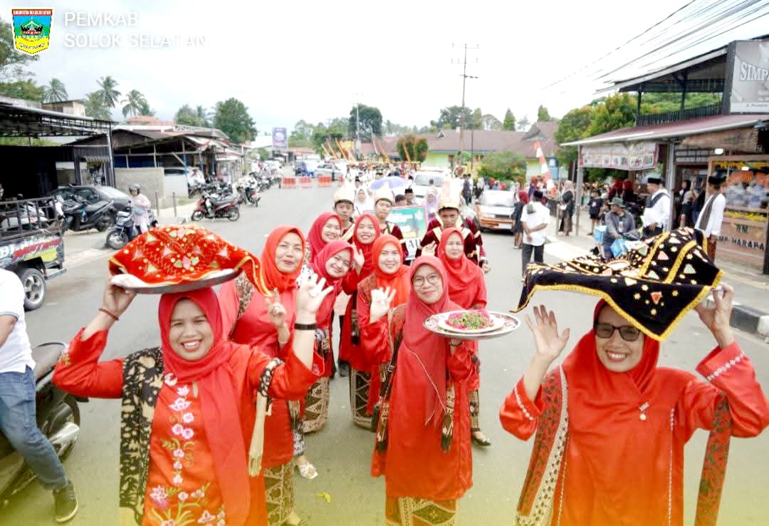 Solsel, dutametro.com – Pawai Kebudayaan menjadi salah satu bagian dalam rangkaian acara peringatan HUT ke-21 Kabupaten Solok Selatan. Pawai kali ini mengangkat tema-tema budaya yang ada di kabupaten dan diikuti oleh berbagai elemen masyarakat nagari, kecamatan dan seluruh OPD.