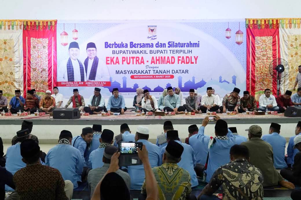 Batusangkar, Pemerintah Kabupaten Tanah Datar menggelar acara silaturahim dan berbuka puasa bersama Bupati/Wabup dengan masyarakat Tanah Datar di Gedung Nasional Maharajo Dirajo Batusangkar, Selasa (4/3/2025).