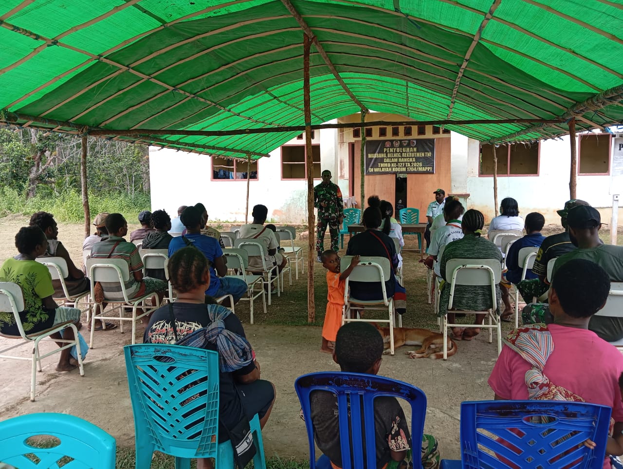 Mappi – Dalam rangka mendukung keberhasilan pelaksanaan TMMD ke-127 Kodim 1704/Mappi, salah satu kegiatan non-fisik yang dilakukan adalah penyampaian materi wawasan kebangsaan kepada warga masyarakat Kampung Yibin. Kegiatan ini dilaksanakan pada hari Selasa, 4 Maret 2026.