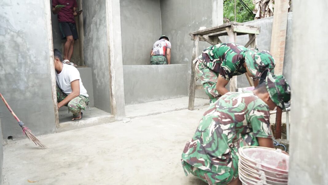 KENDARI – Memasuki tahap penyelesaian yang lebih detail, personel Satuan Tugas (Satgas) TMMD ke-127 Kodim 1417/Kendari kini mulai melaksanakan proses pengacian dinding pada fasilitas Mandi, Cuci, Kakus (MCK) di Kelurahan Sambuli, Rabu (4/3).