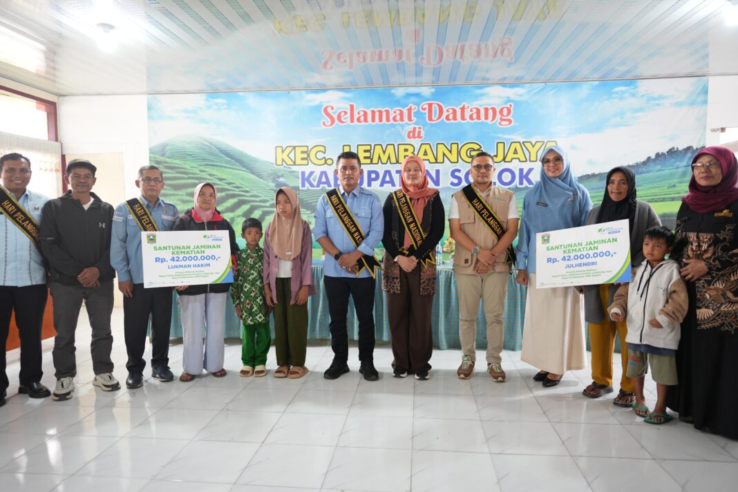 Lembang Jaya, dutametro.com- Pemerintah Kabupaten Solok bersama BPJS Ketenagakerjaan menyerahkan santunan kematian bagi pekerja rentan di Kecamatan Lembang Jaya, Kamis (04/09/2025), bertempat di Aula Kantor Camat Lembang Jaya.