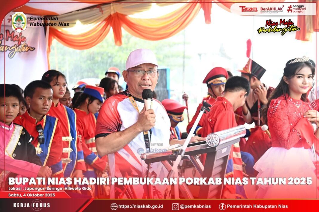 Nias, Sumatera Utara. dutametro.com – Pemerintah Kabupaten Nias melalui Komite Olahraga Nasional Indonesia (KONI) Kabupaten Nias menggelar Pekan Olahraga Kabupaten (PORKAB) Nias Tahun 2025, yang ditandai dengan seremoni pembukaan yang megah dan penuh makna berlokasi dilapangan Beringin Hiliweto Gido. Sabtu, 04/10/2025.