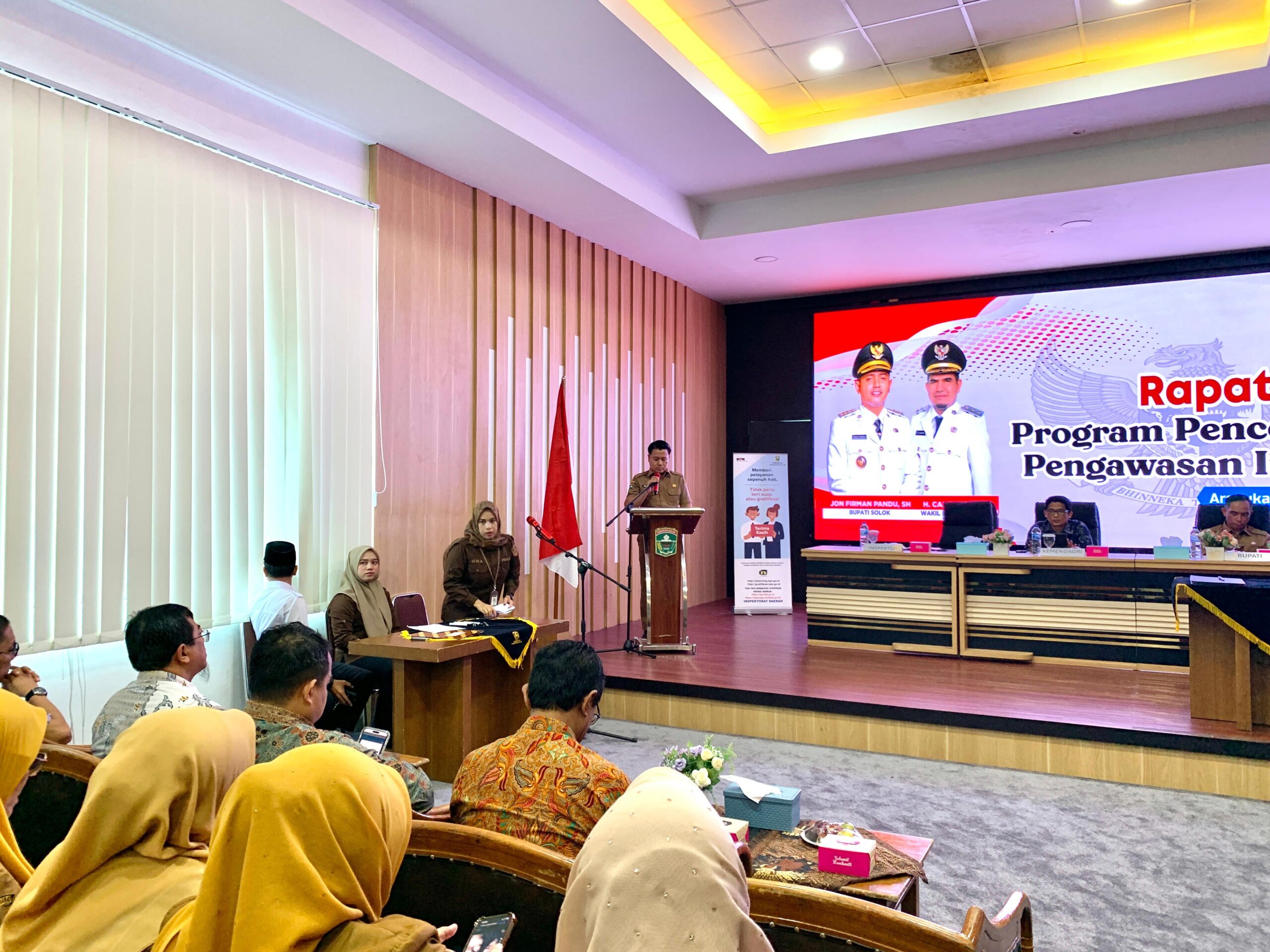 Kegiatan ini dihadiri oleh Tim Satgas Korsupgah KPK Wilayah I yang diketuai oleh Kasatgas Korsup Wilayah I Harun Hidayat beserta jajaran, Auditor Inspektorat Jenderal Kementerian Dalam Negeri yaitu Erric Fadhli, Noviandi Andilolo Lebang dan Hanifah Ainaini, kemudian dari Pemerintah Daerah Bupati Solok diwakili oleh Sekda Medison, Para staf ahli Bupati, Para Asisten, Kepala OPD, Direktur RSUD, Sekretaris dan Inspektur Pembantu Inspektorat, Auditor dan PPUPD Inspektorat, Camat serta Wali Nagari se-Kabupaten Solok.