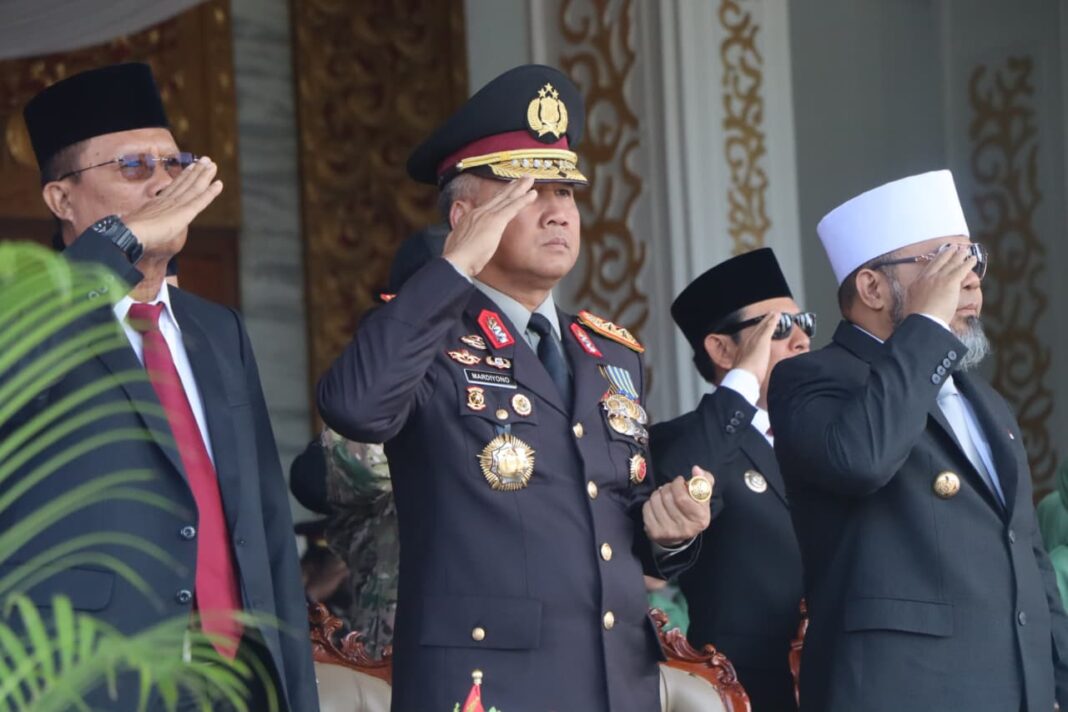 Dalam upacara tersebut, Kapolda Bengkulu turut serta dalam rangkaian kegiatan yang dimulai pukul 08.00 WIB. Upacara ini juga dihadiri oleh Gubernur Bengkulu, H. Helmi Hasan, Wakapolda Bengkulu Brigjen Pol Dicky Sondani,S.I.K ., M.H , Forkopimda Provinsi Bengkulu, PJU Polda Bengkulu, dan Kapolres/Ta Jajaran.