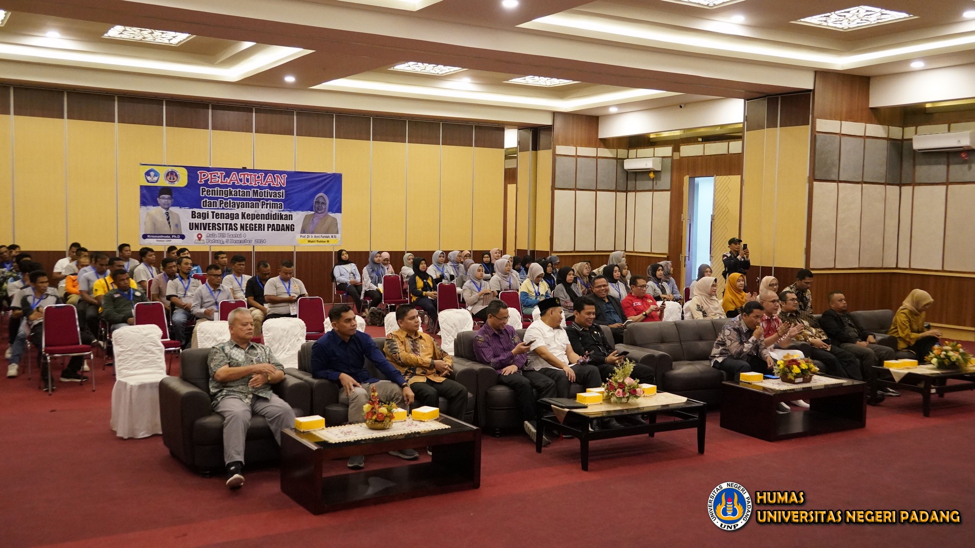 Padang – Universitas Negeri Padang (UNP) kembali menunjukkan komitmennya dalam meningkatkan kompetensi tenaga kependidikan melalui pelatihan bertajuk “Service Excellent: Bekerja dan Mengabdi dengan Energi Bahagia. Melayani dengan Hati, Raih Cinta Ilahi”.