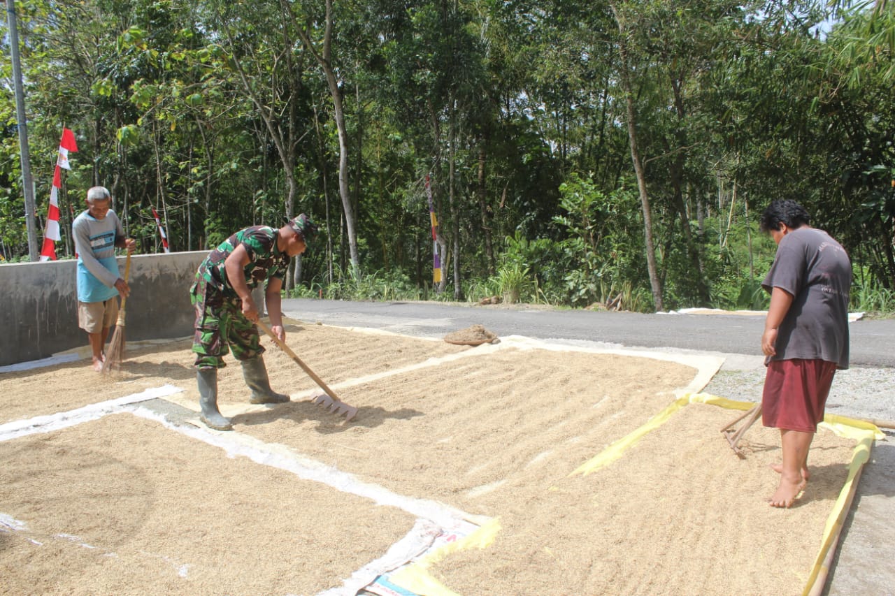 Kebumen – Hamparan padi yang dijemur di halaman rumah warga Desa Somagede menjadi pemandangan khas di musim panen. Di tengah kesibukan program TMMD Reguler ke-127 Kodim 0709/Kebumen, seorang prajurit tampak berhenti sejenak dari pekerjaan fisik dan menghampiri warga yang sedang menjemur padi, Jumat (06/03/2026).