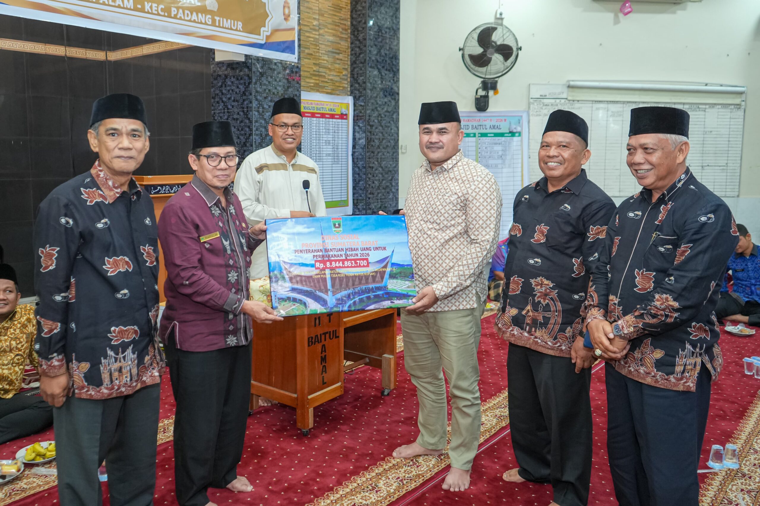 Pada kesempatan tersebut, Arry Yuswandi juga menyerahkan sejumlah bantuan, di antaranya dana hibah untuk Masjid Baitul Amal sebesar Rp50 juta, 40 Al-Qur’an dari ASN Pemprov Sumbar, satu dus kain sarung dari Baznas, serta bantuan CSR Bank Nagari sebesar Rp5 juta untuk masjid.