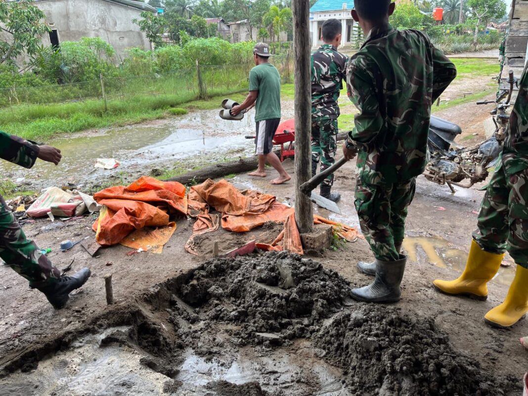 Banyuasin – Anggota Satuan Tugas TNI Manunggal Membangun Desa (TMMD) Ke-127 Kodim 0430/Banyuasin menggencarkan pekerjaan pemasangan keramik lantai pada Rumah Layak Hunian (RLTH) milik Bapak Paiman. Kegiatan ini dilakukan untuk mengejar target agar rumah dapat segera diserahkan dan siap digunakan oleh keluarga Bapak Paiman.