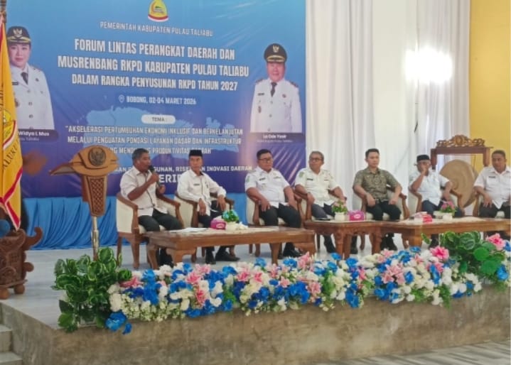 Taliabu | dutametro.com — Wakil Bupati Pulau Taliabu, La Ode Yasir, secara resmi menutup rangkaian Forum Lintas Perangkat Daerah dan Musyawarah Perencanaan Pembangunan (Musrenbang) Kabupaten dalam rangka penyusunan Rencana Kerja Pemerintah Daerah (RKPD) Tahun 2027. Kegiatan tersebut berlangsung di Aula Kantor Bupati Lama, Kota Bobong, Rabu (4/3/2026).