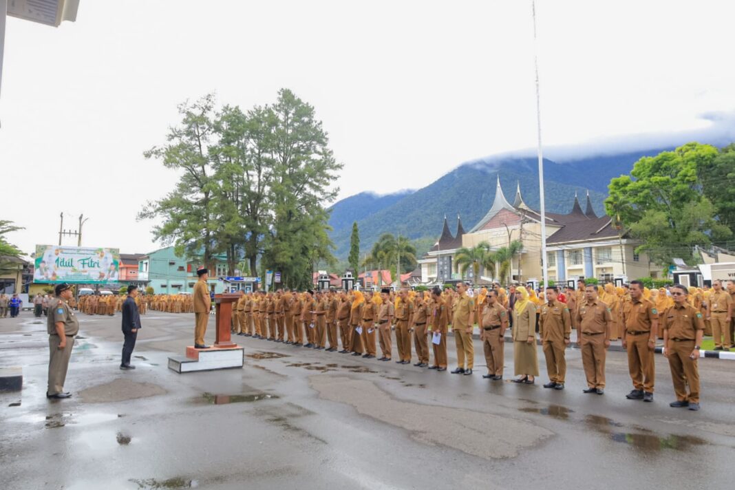 ” Setiap satu OPD harus ada satu inovasi. Paling lambat 30 Mei nanti, inovasi tersebut akan saya tagih,” ujar Bupati Pasaman Welly Suhery, saat memimpin apel gabungan di halaman Kantor Bupati Pasaman, Senin ((6/4/2026).