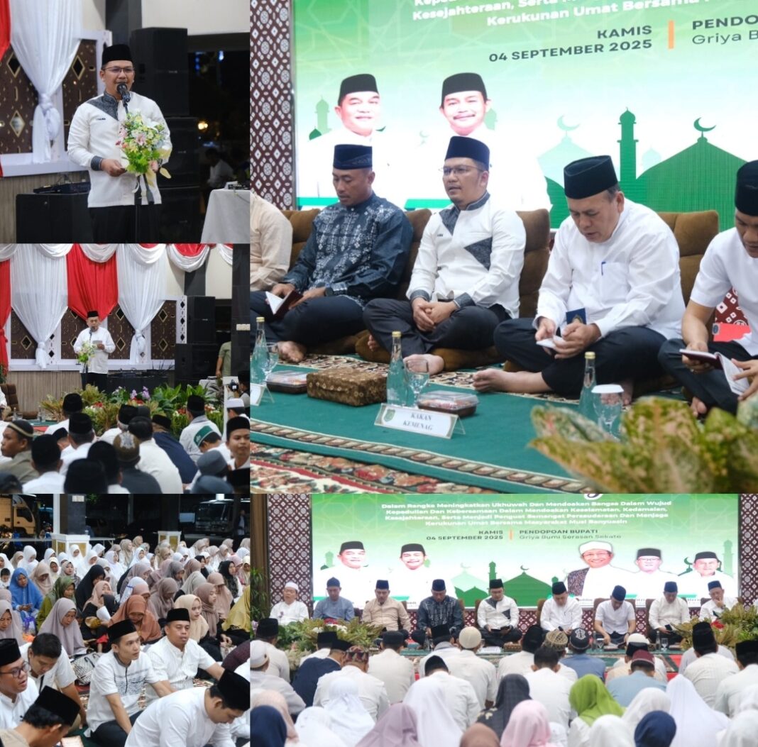 Sekayu, dutametro.com– Ratusan masyarakat Kabupaten Musi Banyuasin (Muba) memadati Pendopoan Griya Bumi Serasan Sekate, Kamis (4/9/2025) malam, dalam kegiatan Dzikir dan Doa Bersama untuk Keselamatan Bangsa. Kegiatan yang digelar serentak di seluruh Indonesia ini berlangsung khidmat, penuh semangat persaudaraan, dan kebersamaan lintas elemen.