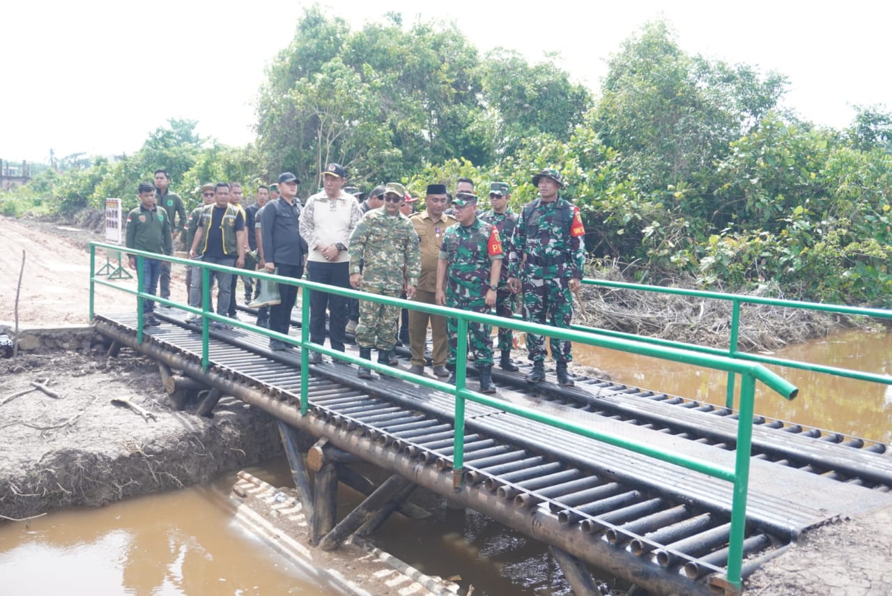 Dalam peninjauan tersebut, Brigjen TNI M. Fachmi Rizal Nasution terlihat berjalan di atas jembatan, didampingi Dandim 0401/Muba Letkol Kav Fredy Christoma Pramono Putra dan perwakilan Pemerintah Daerah Muba .