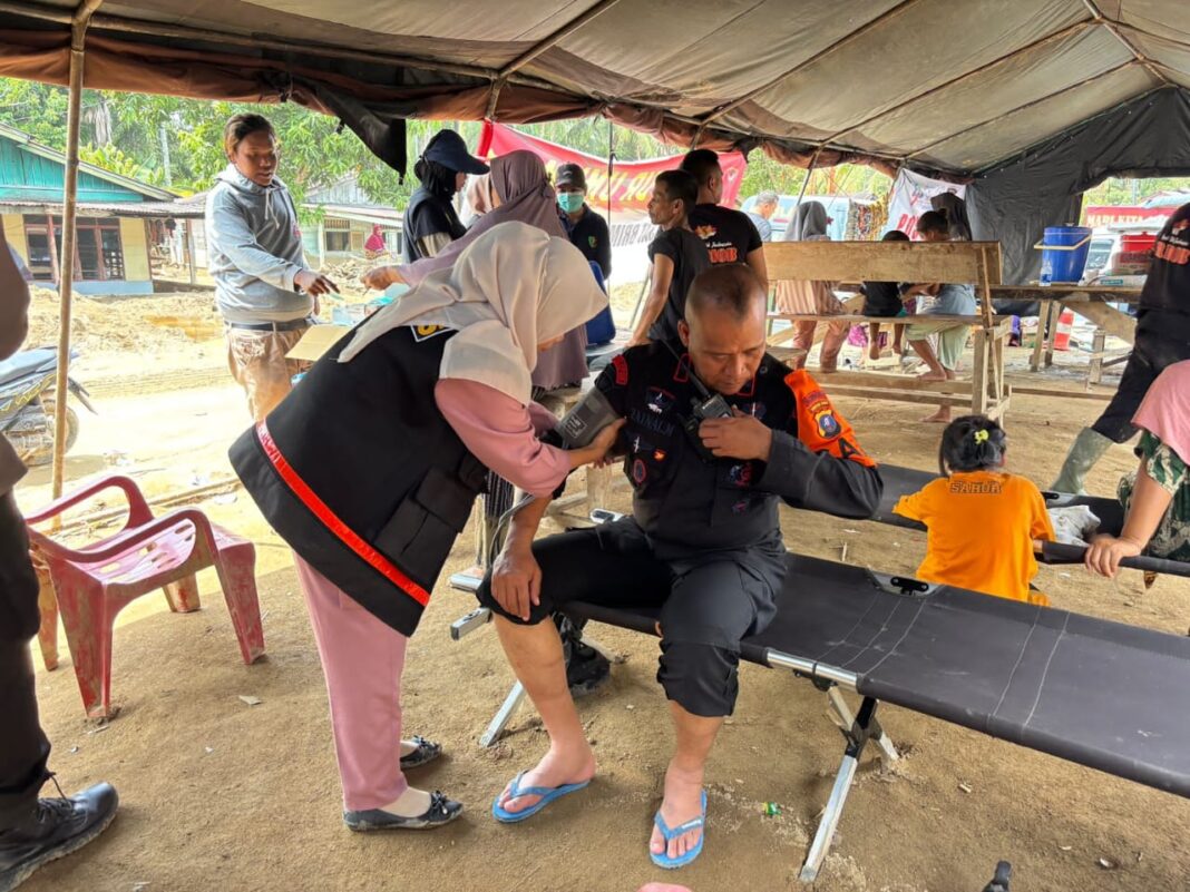 Tidak hanya menyediakan makanan siap santap, posko juga menjadi pusat layanan kesehatan bagi warga yang mengalami masalah pascabencana. Personel Batalyon C Pelopor bersama tim tenaga kesehatan dari Biddokkes RS Bhayangkara TK IV Batang Toru melayani pemeriksaan kesehatan bagi warga yang mengalami gangguan kesehatan akibat lingkungan pascabencana, seperti luka ringan, demam, hingga keluhan pernapasan.