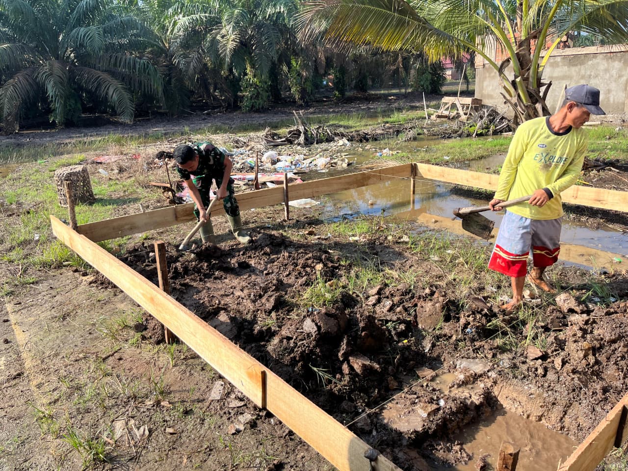 BANYUASIN – Semangat kebersamaan dan gotong royong kembali menyala di Desa Wonosari, Kecamatan Pulau Rimau, Kabupaten Banyuasin, saat Satgas TMMD ke-127 Kodim 0430/Banyuasin bersama masyarakat setempat melaksanakan kegiatan pembangunan fasilitas Mandi, Cuci, Kakus (MCK). Kegiatan ini berlangsung pada Sabtu (07/03/2026) sebagai bagian dari sasaran fisik dalam program TMMD yang bertujuan meningkatkan fasilitas sanitasi dan mendukung pola hidup bersih dan sehat bagi warga desa.