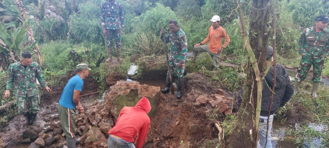 Kab. Bandung – Kegiatan fisik dalam rangka pelaksanaan TMMD Reguler ke-127 Tahun 2026 oleh Kodim 0624/Kabupaten Bandung terus menunjukkan progres positif. Bertempat di Kampung Sukaati RT 01 RW 11, Desa Cipelah, Kecamatan Rancabali, anggota Satgas TMMD bersama masyarakat setempat melaksanakan kegiatan penyiapan penggalian pondasi untuk pembangunan bak penampungan air bersih serta pemasangan pipanisasi. Minggu (8/3).