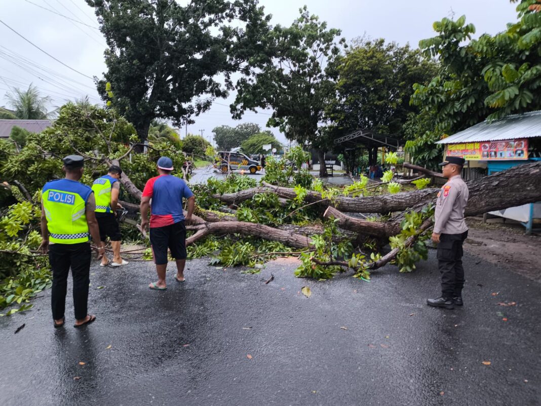 “Kami menerima laporan dari masyarakat terkait adanya pohon tumbang yang menghalangi jalan. Personel langsung kami turunkan ke lokasi untuk melakukan evakuasi agar arus lalu lintas kembali normal,” ujar AKP Bayu.