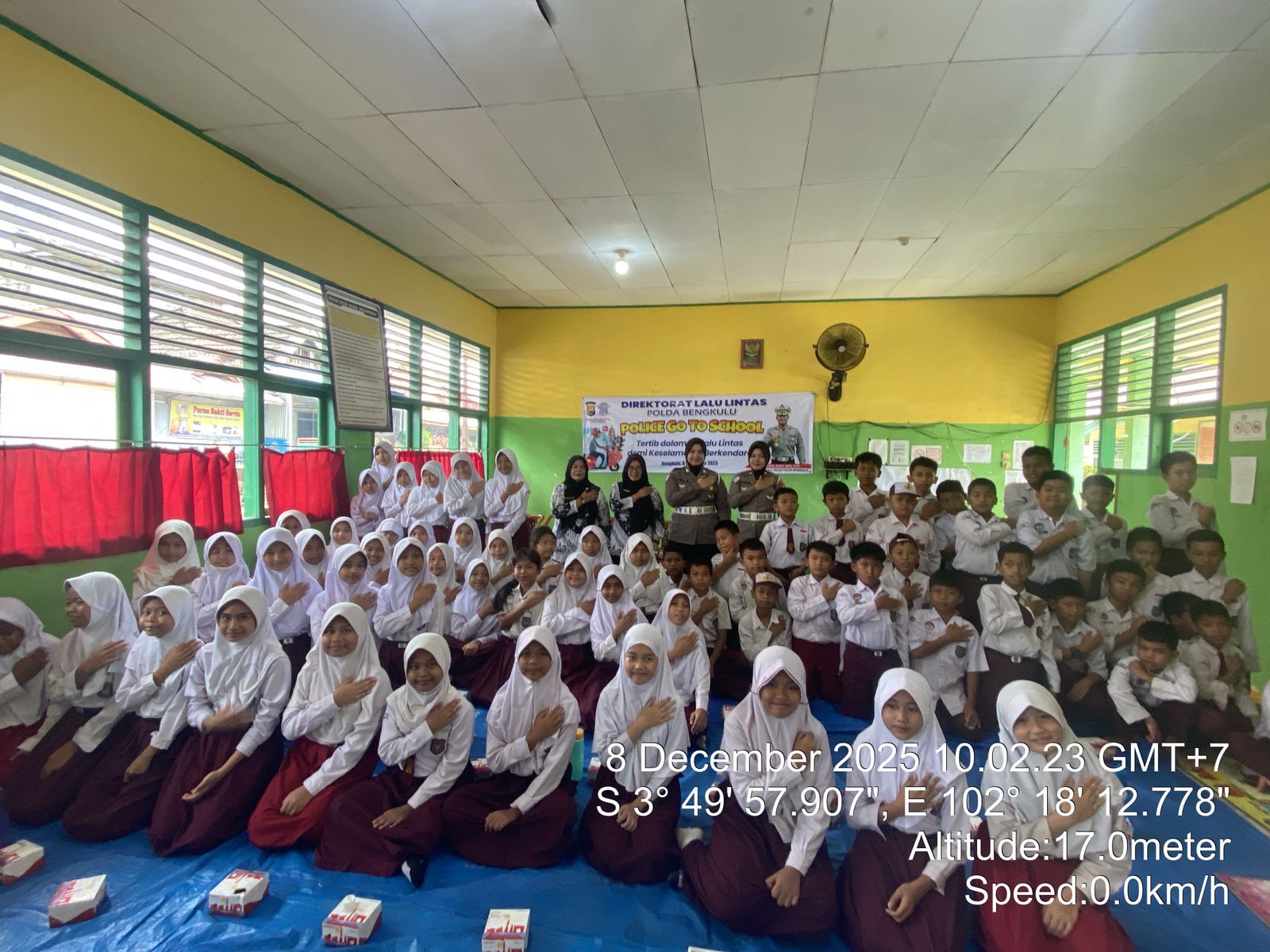 BENGKULU – Ditlantas Polda Bengkulu melaksanakan kegiatan Police Go To School di SDN 99 Kota Bengkulu pada Senin, 8 Desember 2025. Kegiatan ini bertujuan untuk memberikan edukasi dan sosialisasi tentang keselamatan lalu lintas kepada siswa-siswi SDN 99 Kota Bengkulu.