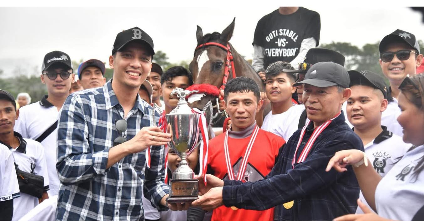 Sawahlunto, dutametro.com – Kuda Melia Guti Stable Bukittinggi menjadi yang tercepat pada Kejuaraan Pacu Kuda Bank Nagari Sawahlunto Derby 2025, Minggu (07/12/2025) di lapangan pacuan kuda Kandi jarak 1.500 meter. Dengan Joki Fajar Walagitan kuda Melia berhasil menjadi juara pertama dengan waktu 1.44.63 mengalahkan Kuda Carolina dari Payakumbuh dengan Joki Zulhendri yang harus puas menjadi tercepat kedua dan kuda Sir Orbit milik Wali Kota Bukittinggi Ramlan Nurmatias diposisi ketiga dengan waktu 1.45.50.Finis keempat Kuda Emmera juga milik Ramlan Nurmatias Emeral Stable dengan joki Nur Syafni dengan waktu 1.49.53. Sementara kuda Noor Aqira finis kelima dengan joki Joni Adrian catatan waktu 1.49.51.