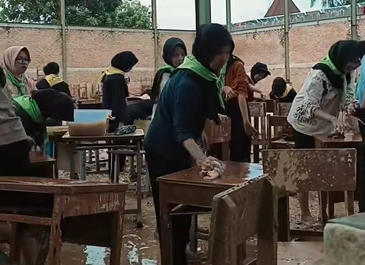Saat banjir bandang melanda, Jumat pekan lalu, lumpur setinggi dada orang dewasa menerjang sekolah ini. Ketika sudah surut, ASN Pemko Padang datang membersihkannya, Minggu (7/12/2025).