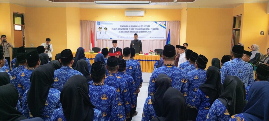 Sawahlunto, dutametro.com – Sebanyak 70 orang pejabat administrator , pengawas dan kepala Puskesmas dilingkup Pemerintah Kota Sawahlunto dilantik dan diambil sumpahnya Wali Kota Sawahlunto Riyanda Putra, Kamis (09/10/2025) di Sanggar Kegiatan Belajar (SKB) Sapan. Pelantikan ini menjadi hal yang ditunggu -tunggu setelah 7 bulan Wali Kota dan Wakil Wali Kota Sawahlunto dilantik, sekaligus menjawab pertanyaan publik selama ini.