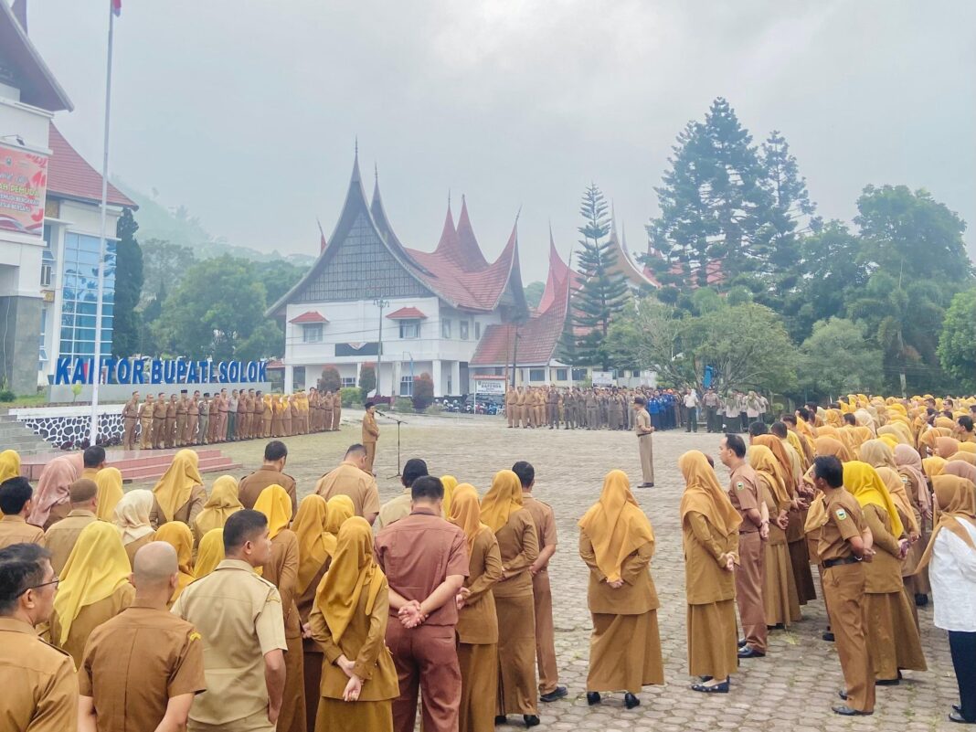 Arosuka – Wakil Bupati Solok, H. Candra, S.H.I., memimpin apel pagi di lingkungan Pemerintah Kabupaten Solok yang diikuti oleh Sekretaris Daerah Medison, S.Sos, M.Si, para Staf Ahli Bupati, para Asisten, Kepala OPD, Pejabat Administrator dan Pengawas, serta seluruh ASN di lingkungan Pemerintah Kabupaten Solok, Senin (09/02/2026).