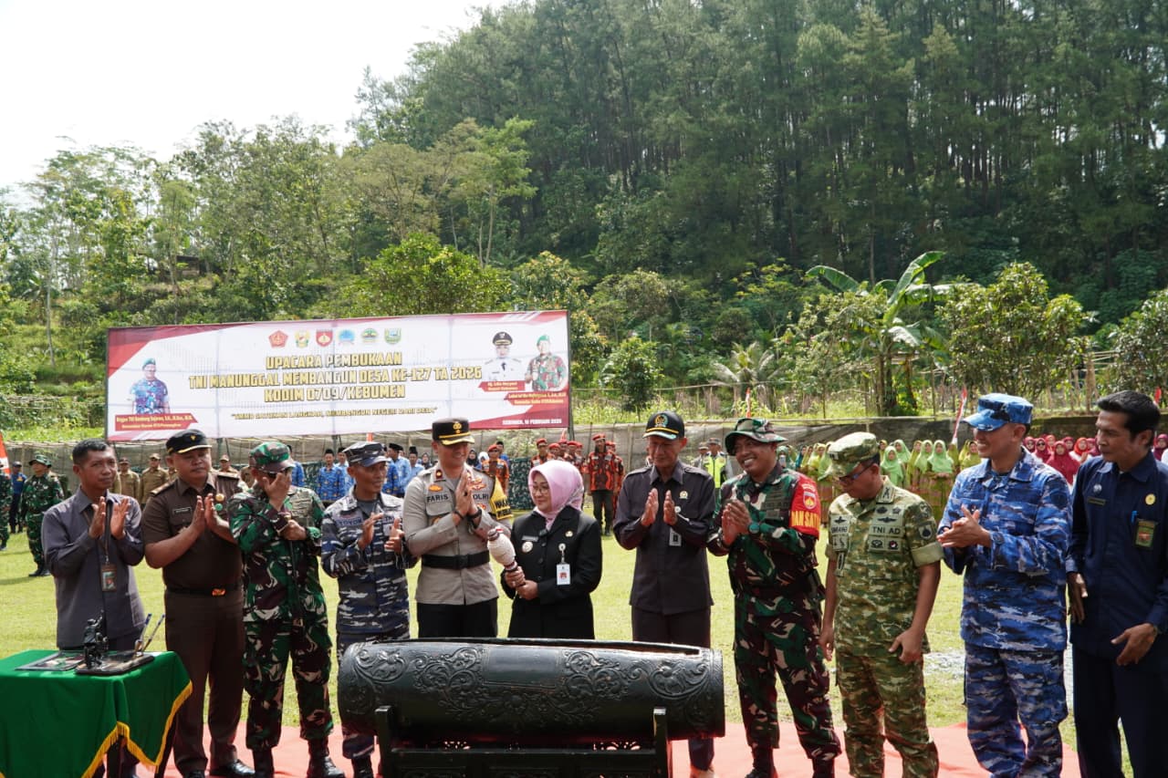 Kebumen – Upacara Pembukaan TMMD Reguler ke-127 Tahun Anggaran 2026 Kodim 0709/Kebumen berlangsung khidmat di Lapangan Pondok Pesantren Al Barokah, Desa Binangun, Kecamatan Karanggayam, Kabupaten Kebumen, Selasa (10/2/2026).