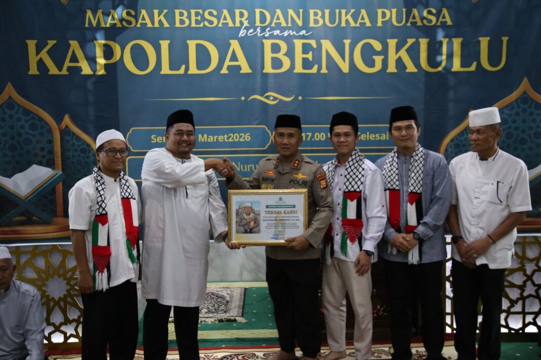Bengkulu – Kapolda Bengkulu Irjen Pol Mardiyono,S.I.K., M.Si., menggelar acara Masak Besar dan Buka Puasa bersama Kesatuan Aksi Mahasiswa Muslim Indonesia (KAMMI) Bengkulu di Kampoeng Ramadhan Merah Putih, Masjid Nurul Iman, Lingkar Timur, pada Senin (9/3/2026)sore.