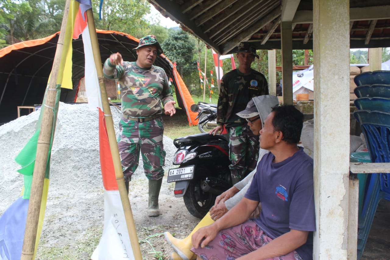 Kebumen – Menjelang penutupan program TMMD Reguler ke-127 Kodim 0709/Kebumen, berbagai persiapan terus dilakukan. Salah satunya melalui koordinasi yang dilaksanakan oleh anggota Satgas, Sertu Teguh, bersama warga Desa Somagede sebelum pengerjaan prasasti penanda kegiatan TMMD.