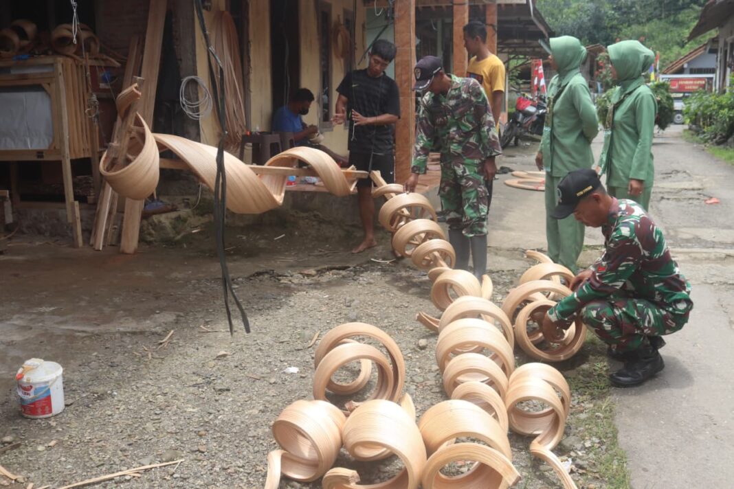 Kebumen — Persit Kartika Chandra Kirana (KCK) Cabang XXIX Dim 0709/Kebumen melalui Ny. Baresko dan Ny. Agus meninjau langsung salah satu pelaku UMKM kerajinan bambu di Desa Somagede, Kecamatan Sempor. Kegiatan ini menjadi bagian dari dukungan Persit terhadap pelaksanaan program TMMD Reguler ke-127 yang tengah berlangsung di wilayah tersebut.