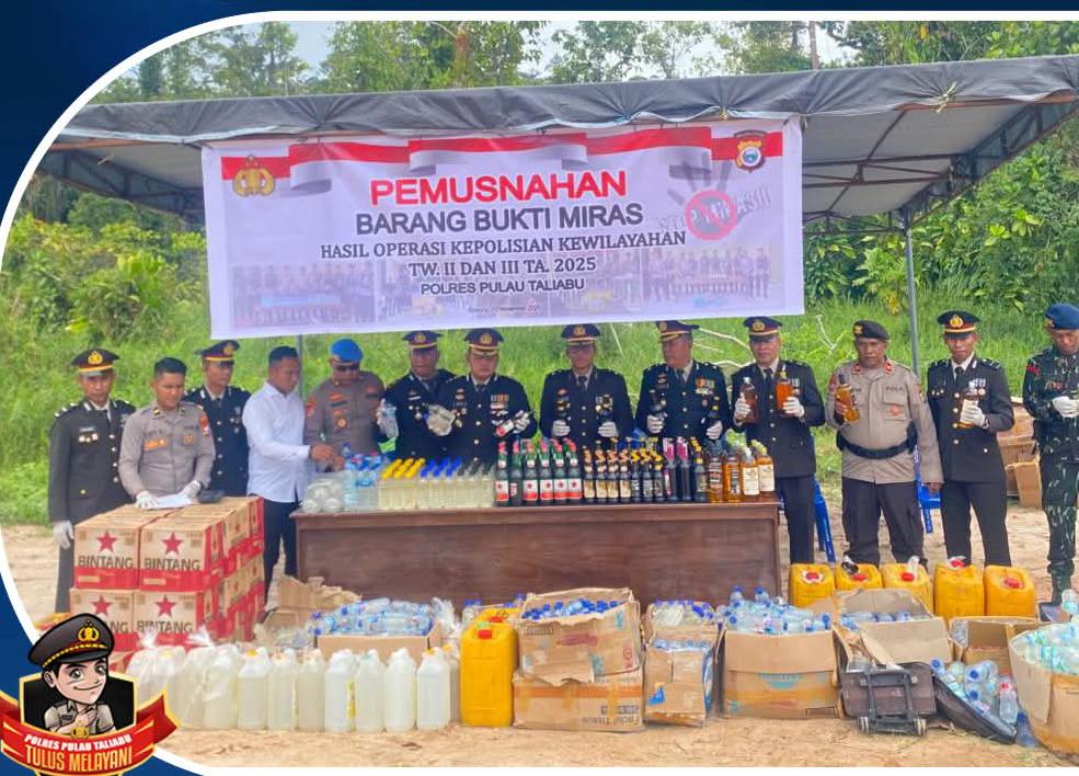 Menurut Kapolres Pulau Taliabu, AKBP Adnan Wahyu Kasoghi., S.I.K.,M.H. Pemusnahan ini dilakukan berdasarkan undang-undang nomor 2 tahun 2002 tentang Kepolisian Negara Republik Indonesia tentang kepolisian negara republik indonesia dan diperkuat dengan surat telegram kapolda nomor: st/63/IV/ops.1.3./2025 tanggal 11 april 2025 tentang antisipasi terjadinya peredaran minuman keras dan narkoba di wilayah hukum polres jajaran polda maluku utara serta surat perintah Kapolres nomor: sprin/363/XI/2025 tanggal 07 November 2025, tentang panitia pelaksana pemusnahan barang bukti hasil operasi kepolisian di wilayah hukum Polres Pulau Taliabu tahun 2025.