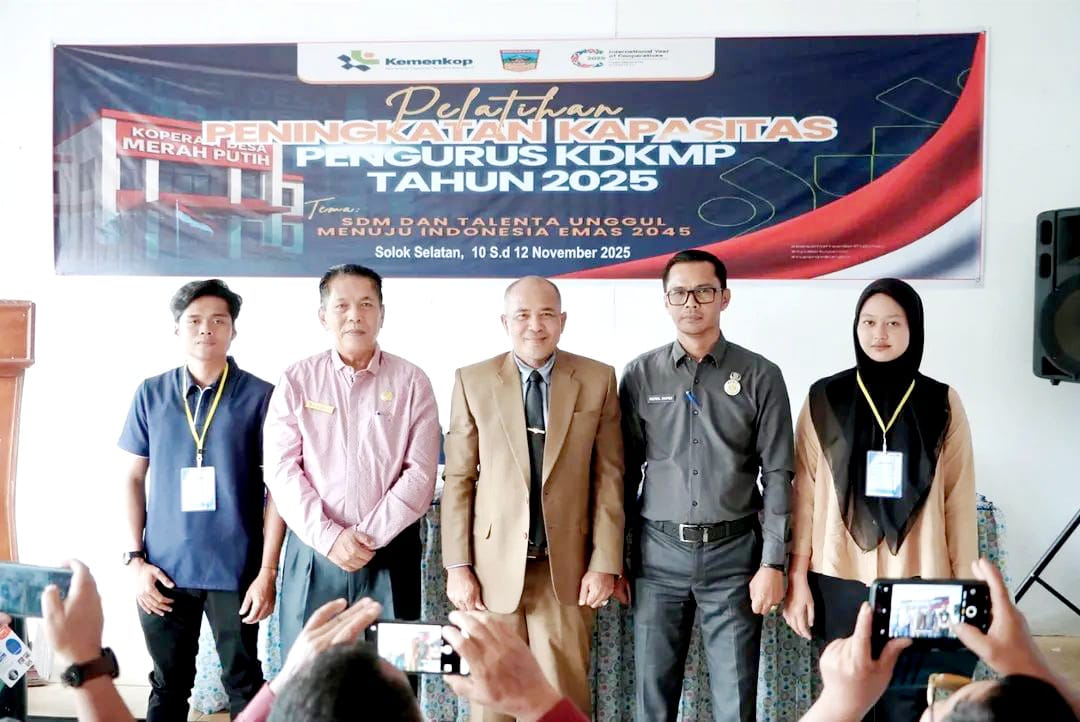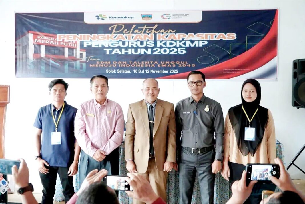 Solsel, dutametro.com – Kementerian Koperasi dan UKM RI melalui Deputi Bidang Pengembangan SDM dan Talenta bekerja sama dengan Dinas Koperasi dan UKM Provinsi Sumatera Barat serta Dinas Perindustrian Koperasi UKM Solok Selatan menyelenggarakan Pelatihan Peningkatan Kompetensi SDM Pengurus Koperasi Desa/Kelurahan Merah Putih (KDKMP) se-Kabupaten Solok Selatan. Kegiatan ini dibuka Senin (10/11/2025) di Aula Dinas Tenaga Kerja dan Transmigrasi.