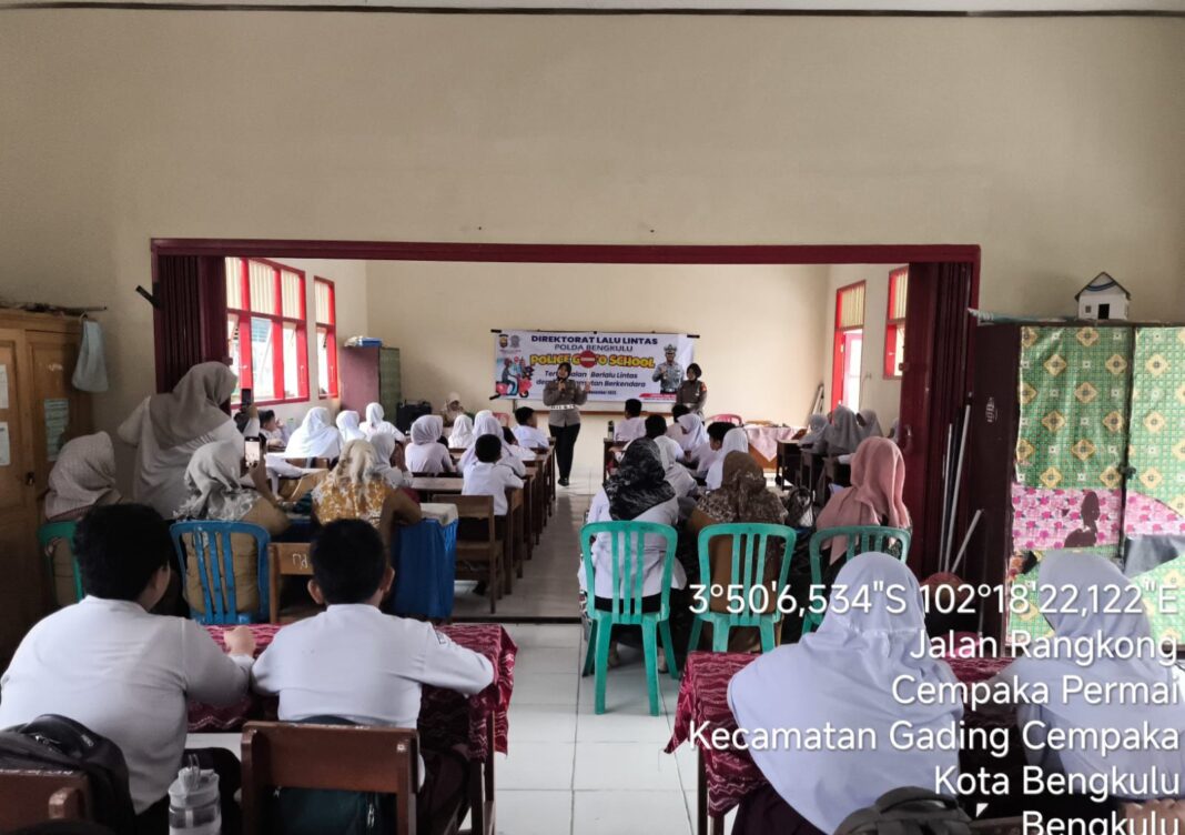 BENGKULU – Ditlantas Polda Bengkulu melaksanakan kegiatan Police Go To School di SDN 81 Kota Bengkulu pada Rabu, 10 Desember 2025. Kegiatan ini bertujuan untuk memberikan edukasi dan sosialisasi tentang keselamatan lalu lintas kepada siswa-siswi SDN 81 Kota Bengkulu.