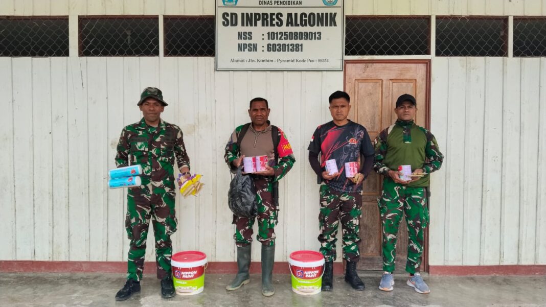 Wamena — Satgas TNI Manunggal Membangun Desa (TMMD) ke-126 Kodim 1702/Jayawijaya terus menunjukkan kepeduliannya terhadap fasilitas pendidikan di wilayah tugasnya. Kali ini, Satgas melaksanakan program tambahan berupa menyiapkan alat pengecatan berupa kuas dan cat untuk sekolah di Kampung Algonik, Distrik Pyramid, Kabupaten Jayawijaya. Sabtu (11/10/2025).