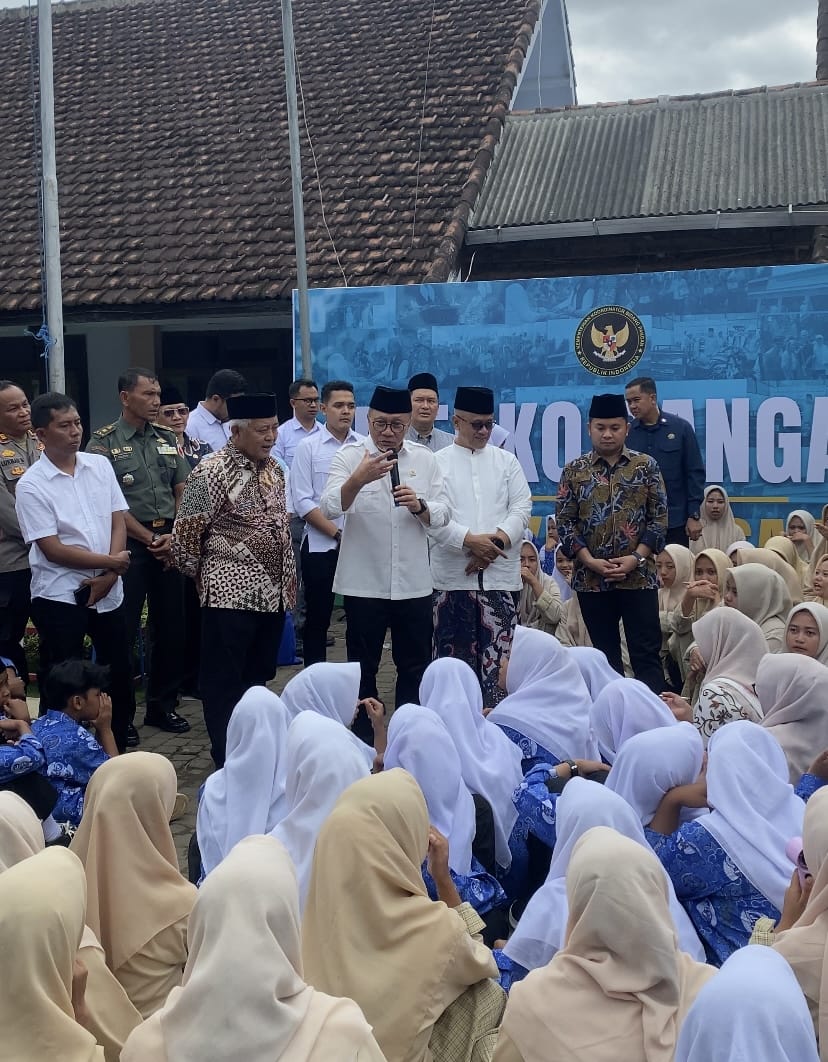 Agenda kunjungan dilanjutkan ke Pondok Pesantren Raudlatul Ulum 2 di Desa Putukrejo, Kecamatan Gondanglegi. Di hadapan para santri, Zulkifli Hasan menekankan pentingnya membangun kepercayaan diri dan daya kritis generasi muda dalam menghadapi tantangan pembangunan.