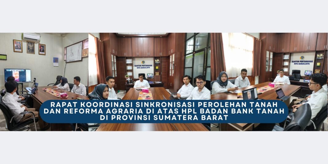 Sawahlunto,dutametro.com – Kantor Pertanahan Kota Sawahlunto mengikuti kegiatan Rapat Koordinasi Sinkronisasi Perolehan Tanah dan Reforma Agraria di atas Hak Pengelolaan Lahan (HPL) Badan Bank Tanah di Provinsi Sumatera Barat. Kegiatan ini dilaksanakan sebagai upaya untuk menyamakan pemahaman serta memperkuat koordinasi antar pihak terkait.